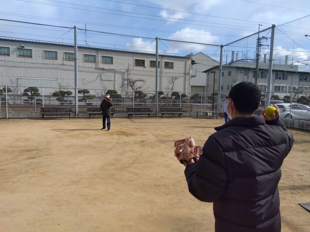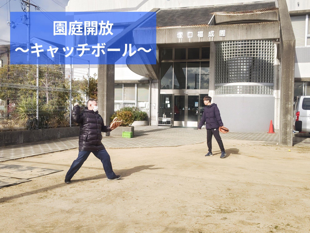 毎月1回昼食休憩時に園庭をレクリエーションで使用できるようにしています。今回はキャッチボールをしました。寒いのでなかなか体を動かす機会が少ない時期ですが、参加者はみなさま笑顔で楽しんでおられました。