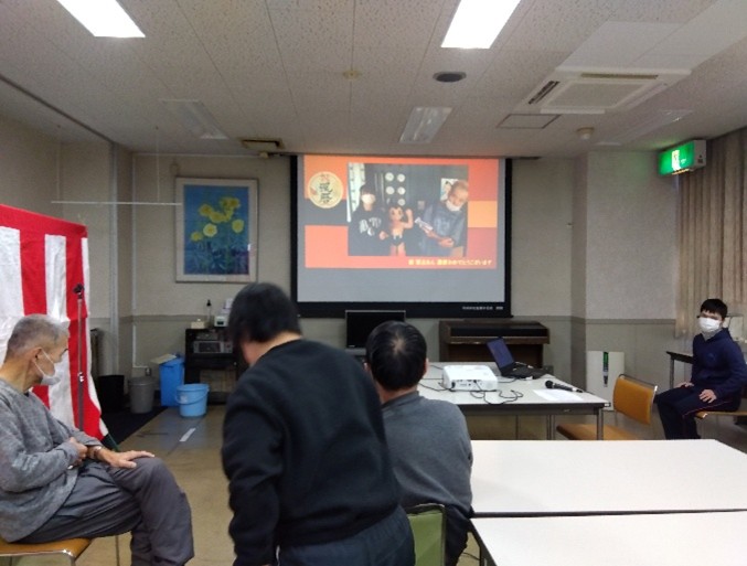 また、還暦を迎えた利用者の今までの写真をスライドショーにし、思い出を振り返りました。みなさま昔を思い出し、思い出話に花が咲きました。