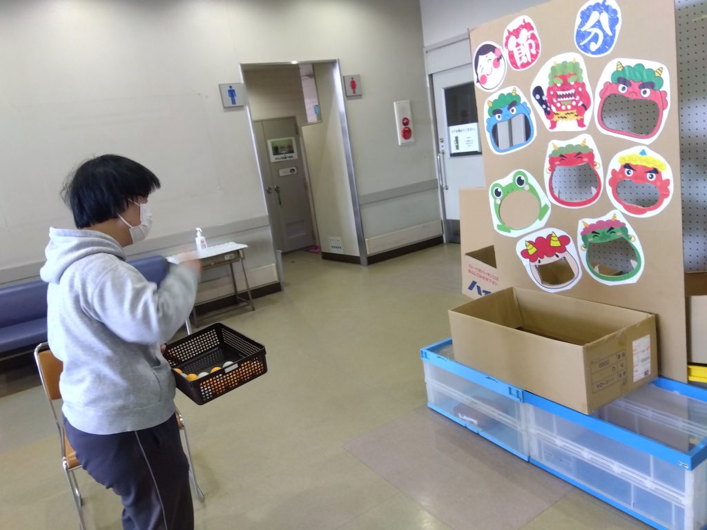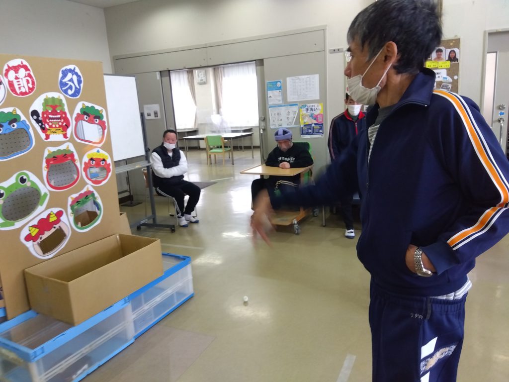 2月3日は節分ということで生活介護のレクリエーションで鬼の的あてゲームを実施しました。